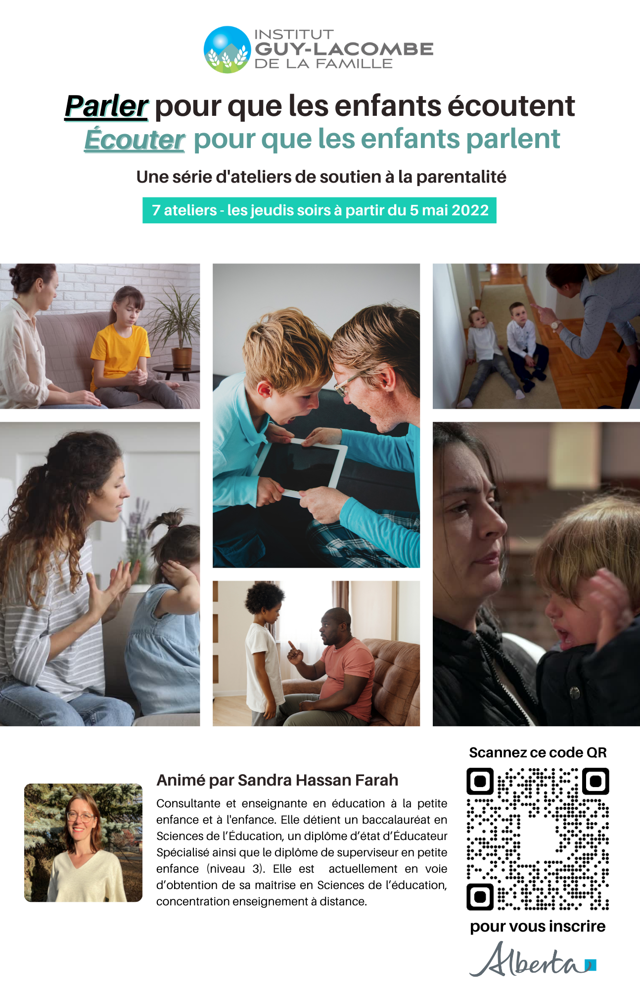 Un programme parental, offert par l’Institut Guy-Lacombe de la famille, qui présente d’autres façons de communiquer avec les enfants. Découvrez des façons d’utiliser les mots pour édifier l’estime de soi, inspirer la confiance et encourager l’enfant à assumer ses responsabilités.